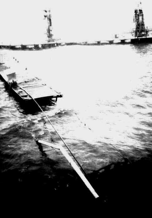 LÍTIÐ tjón og minna en menn óttuðust varð á bryggjum á Siglufirði í fárviðrinu í gær. Þó fór lýsisbryggja SR í sundur á um 20 metra kafla. Sýnir myndin, sem Steingrímur Kristinsson tók, hvernig bryggjan leit út etir hamfarirnar.