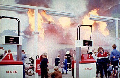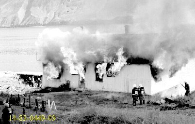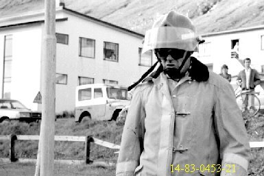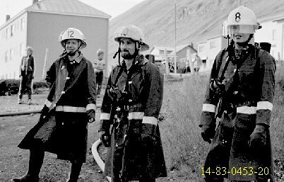 Þessi syrpa er frá bruna "Bakka" hússins 1983, guttarnir á einni myndinni er "bakkabúar" að fylgjast með athöfninni, slökkviliðsmennirnir lengst til vinstri eru Sverrir Elefsen, Ingibjörn Jóhannsson og Óskar Berg Elefsen. Slökkviliðstjórinn í þessu tilfelli "brennuvargurinn", Kristinn Georgsson er á síðustu myndinni.