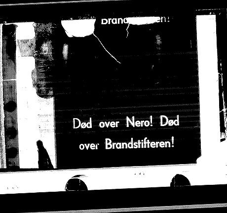 Þetta er söguleg "mynd" Þetta er filmubútur sem varð eftir í ramma sýningarvélar, Nýja Bíós þegar það brann árið 1936. Verið var að sýna kvikmyndina Nero Keisari og var einmitt á því augnabliki sem eldur kviknaði, atriðið á tjaldinu þar sem Róm stóð í björtu báli og fólkið hljóp um göturnar á flótta undan eldinum og hrópaði: Död over Nero! Dod over brandstifteren. En þetta var á tímum þöglu myndanna og var á milli settur inn texti, í þessu tilfelli danskur texti á svörtum fleti. (Orsök brunans var sú að það kviknaði í filmunni, sem verið var að sýna og urðu af miklar skemmdir á vélum og kvikmyndahúsinu)