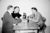 08-62-0042-16 Sigurjón Sæmundsson bæjarstjóri og prentsmiðjustjóri, Þ Ragnar Jónasson bæjargjaldkeri og sagnaritari, og Kristján Sturlaugsson kennari, smakka á gaffalbitunum. |