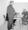 08-62-0042-14 Bjarni Jóhannsson, fulltrú Framsóknarflokksins í bæjarstjórn og forstjóri Á.T.V.R., Stefán Friðbjarnarson, fulltrúi Sjálfstæðisflokksins og fréttaritari Morgunblaðsins, Benedikt Sigurðsson kennari og fulltrúi Alþýðubandalagsins og fréttaritari vikublaðsins Mjölnir og Jóhann Þorvaldsson kennari og fréttaritari vikublaðsins Einherja. Hér eru þeir að smakka á gaffalbitunum |