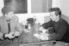 09-64-0371-31 Guðbrandur Sigurbjörnsson saumar fyrir poka, pípan hans ekki fjarri.