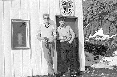 09-64-0136-27 Jens Gíslason rafvirki og Steingrímur Kristinsson í dyrum Slysavarnarskýlisins |      |