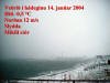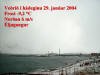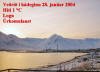 Vešriš į Sigló ķ hįdeginu 2004 Hitamęlirinn er stašsettur ķ tveggja metra hęš, ķ skugga frį sólu į hśsinu Hvanneyrarbraut 80. Vindhraši er įętlašur, m.v. sjįlfvirkan vindmęlir ķ botni fjaršarins. Myndin hverju sinni er tekin til sušurs, frį svölum Hvanneyrarbrautar 80. .