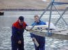 Hörður Hjálmarsson og Guðmundur Sigurjónsson að ditta að landgangi, við Smábátahöfnina