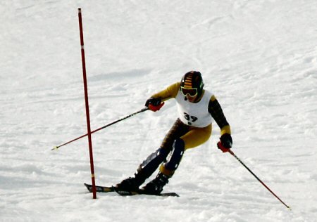 2004-03-14-23 Þarna efst uppi, var 40 manna hópur ((klúbbur ?) og fóru með lyftunum upp og rendu sér niður bratta hlíðna, mörgum sinnum.