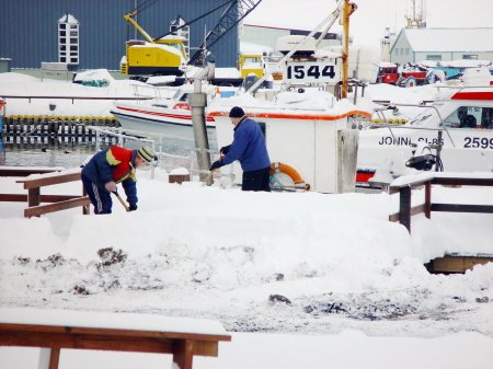 upp og útskipun í Siglufjarðarhöfn, í morgun og drakk með þeim kaffi.