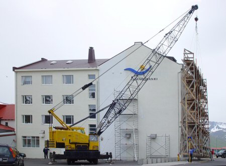 búið að nota vinnupallinn á norðurhliðinni á Íslandsbankahúsinu, og næst
