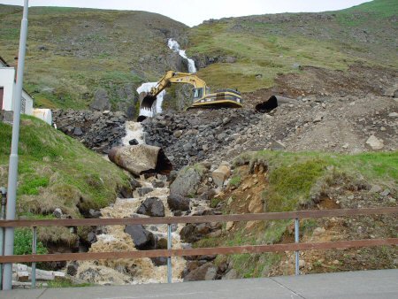 snjóflóðavarnargarðsins, - sennilega fyrsta klöppina sem hinar stórvirku