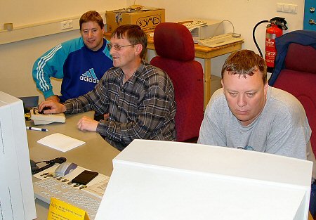 Sævar Björnsson límdir við stjórnskjáina, en þróarkarlinn Sigurjón