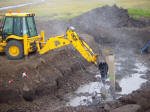 var að jafna steinstólpana sem áður höfðu verið reknir 10-12 metra niður
