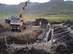 undirbúning að uppslætti við brúarstólpa starfsmenn Mikael, vegna