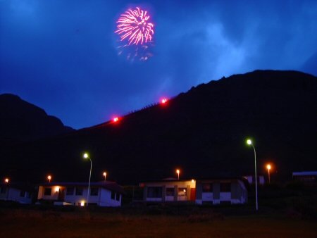 tilheyrandi- og skutu einnig upp flugeldum og tendruðu blys á stöllum