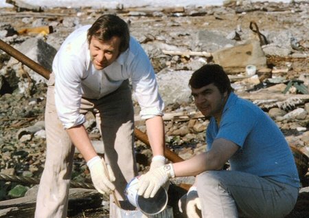 Takið eftir Bjarna Júlíusi Ólafssyni fjær, sem togar í vogarstöng til að