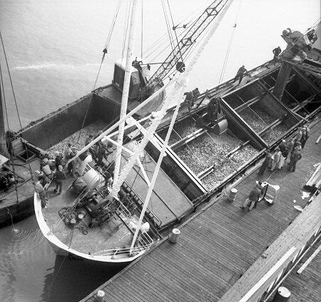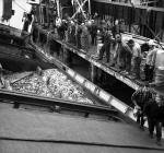 síldarflutningaskipiđ Stokkvik, nćrri sokkiđ viđ löndunarbryggju SR á