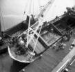 í miđju skipsins, ţrátt fyrir andmćli löndunarkarla, međ ţeim