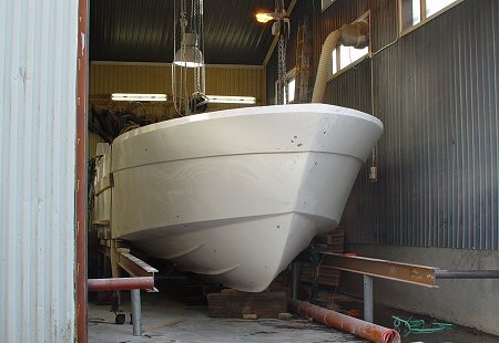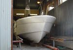 bátinn sem veriđ er ađ lengja. Fjóra af 10 starfsmönnum verkstćđisins;