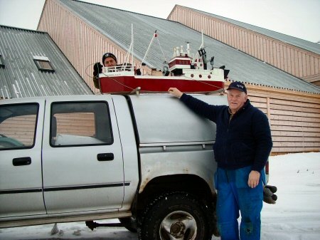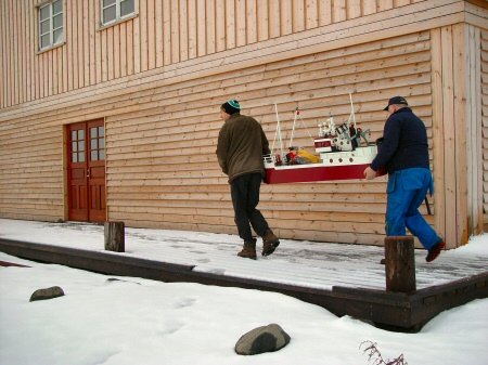 að flytja skip milli húsa. Þetta er líkan af Sigurborgu SI 275 sem