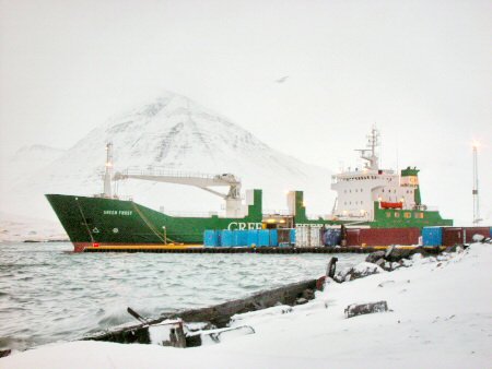 Flutningaskipið GREEN FROST hóf losun hér í morgun á 468 tonnum