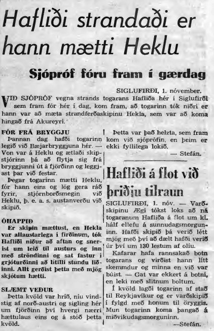 Sjópróf vegna strandsins á togaranum Hafliða SI 2 |