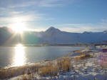klæða bæinn í mildan haustbúning. Myndin er tekin klukkan 13:15 í dag. |