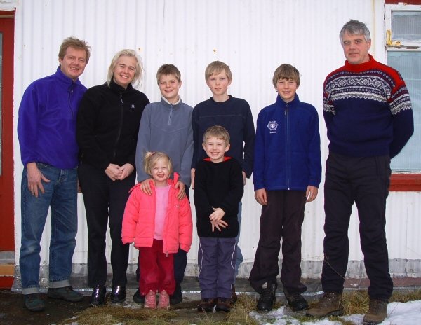 Gunnar Hannesson. --- En myndin sýnir fjölskyldurnar fyrir utan húsið