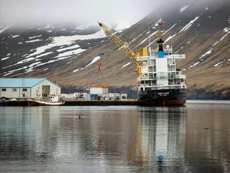 nótt eða í morgun snemma og lestaði hér mikið af vörum og marga tugi