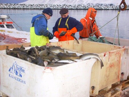 að "slátra" þorski úr eldiskvíunum sem Sigtryggur hefur gert út