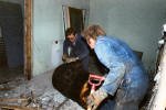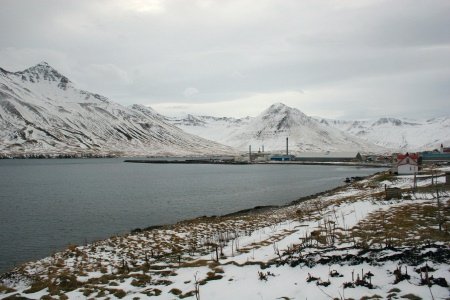Síldarvinnslunni á Siglufirði við að þvo og þurrka stóra mjölpoka. Ég