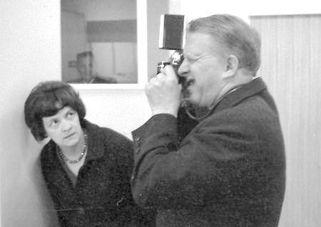 Jóhann G Möller er að taka og Hólmfríður Magnúsdóttir fylgist svo