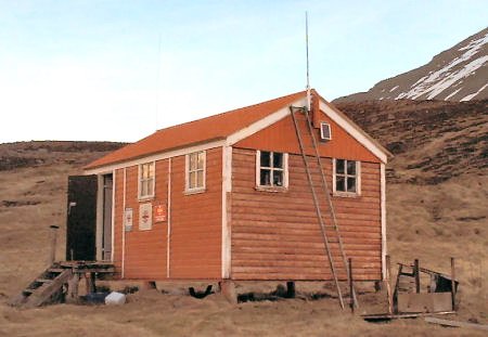 í land á eynni Jan Mayen. Það var blíðskaparveður og lágdauður sjór