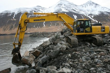 Vel miðar við endurgerð grjónvarnargarðsins austantil í