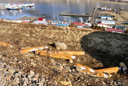 hitaveiturör) liggja á víð og dreif, rétt fyrir neðan veginn. Ótrúlegur