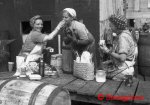 Miđađ á rćkju, sem veriđ var ađ taka úr frystigám í sekkjum til