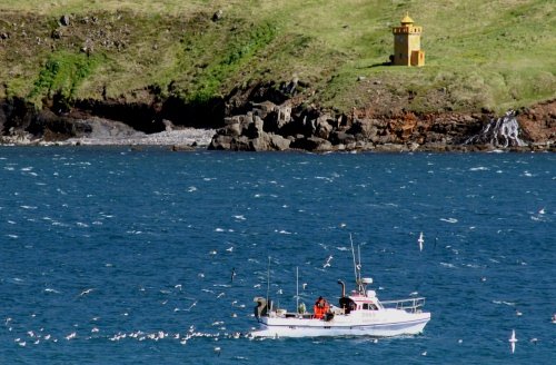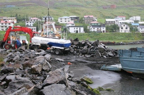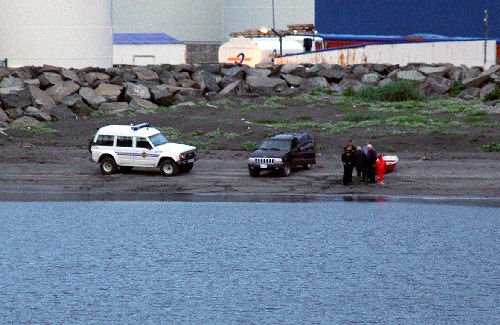 Óvenjulega stađsetning lögreglunnar í fjörunni í Hvanneyrarkrók