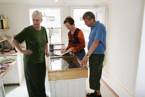 til vinstri er Hafdís ađ sinna gestum sem jafnframt skrifa í gestabókina