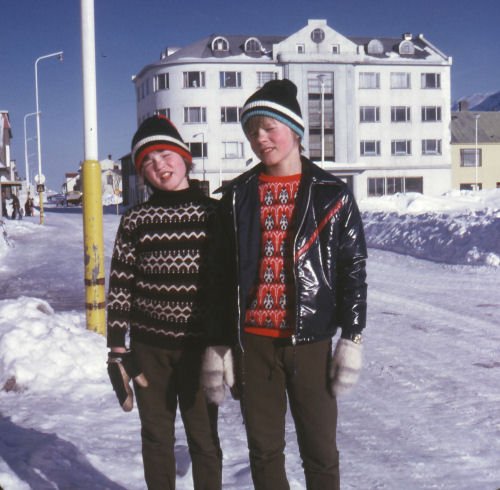 Systir hans Margrét Selma er međ honum á myndinni |