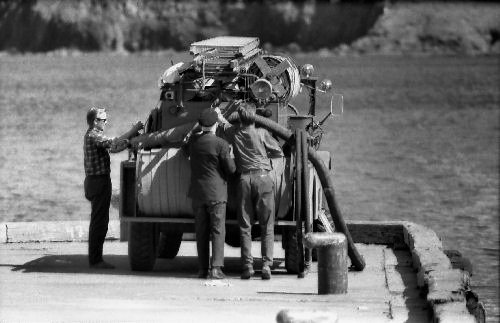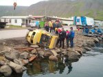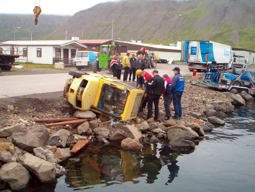 dælubíllinn prófaður og yfirfarinn á góðvirðisdegi á Hafnarbryggjunni