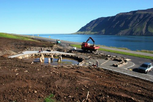 sandinum í fjörunni í Hvanneyrarkrók. Þessi mynd er ein af