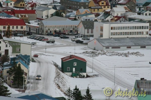 Torginu og Ráðhúsinu á Sigló - Og séð niður Aðalgötuna. |