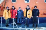 yfir góðum hádegismat í landi. Myndin til vinstri er af áhöfninni á