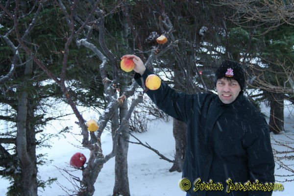 enda við að dreifa ávöxtunum á trén í garðinum sunnan við prestsetrið. |