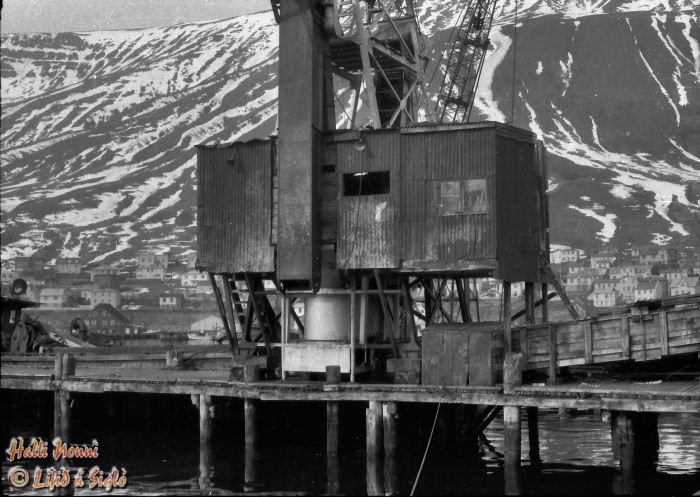 fallegur á að líta þessi skúr, innbyggður í löndunarkrana hjá Rauðku