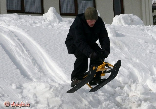 sleðum og tóku flugstökk. --- Nokkrar myndir frá athæfi þeirra er hérna