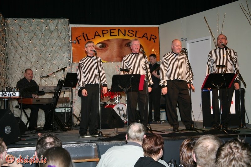 njótandi í boði Fílapenslanna í gærkveldi og hlusta og horfa á þá