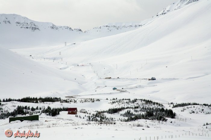 gær á Skíðasvæðinu í Skarðsdal. Þar var þar mikið fjölmenni aðkomufólks,