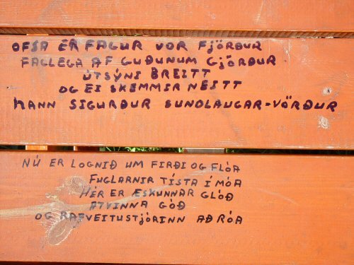 Þessar vísur, þótti mér þess virði að birta þær hér. Höfundur er ókunnur, vísurnar eru ritaðar með "túss" penna á borð það, sem er við innkeyrsluna í bæinn okkar.