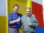 17. júlí Þetta eru þeir Guðmundur Magnússon skipstjóri, með "dósirnar" á lofti. Ólafur er að vinna við uppbyggingu, ytra útlits,"Gránu"og Ólafur Þór Haraldsson vélstjóri, sem kom í heimsókn á safnið.
