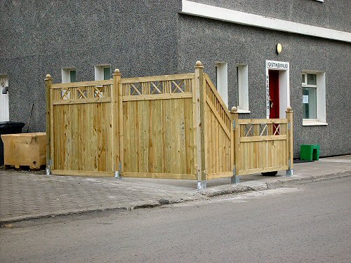 En að leyfa staðsetningu hans á gangstétt, og hrekja þar með gangandi út á götuna, og enn lengra út á götuna, þegar bifreiðar leggja við innganginn, sem er algengt. Þarna er umferð oftast mikil, bæði stórar bifreiðar og vinnuvélar. Hvað eru menn í Tækni og umkverfisnefnd, og væntanlega umferðaráði, einnig að hugsa? Er þetta væntan leg stefna, að loka gangstéttunum í bænum á fleiri stöðum?