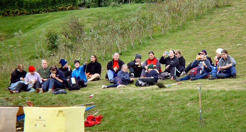Mikið og gott starf vinnuhópa unglinganna hefur verið unnið það sem af er sumri og stendur enn, Þarna eru tveir, eða fleiri vinnuhópar í pásu og sumir að næra sig.
